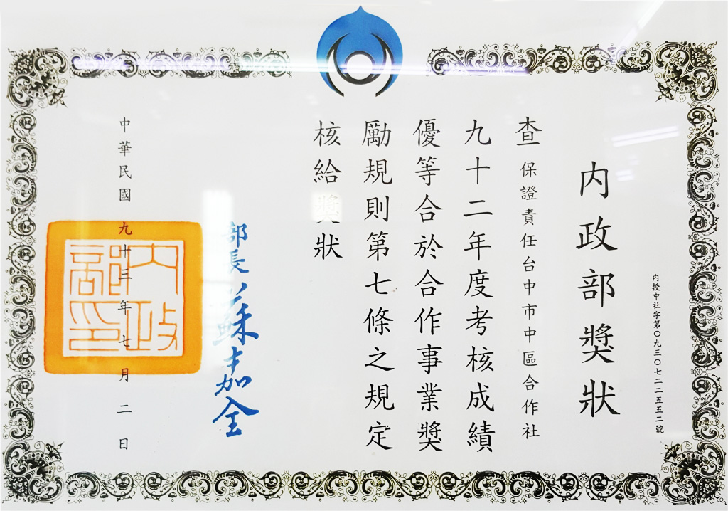 內政部獎狀